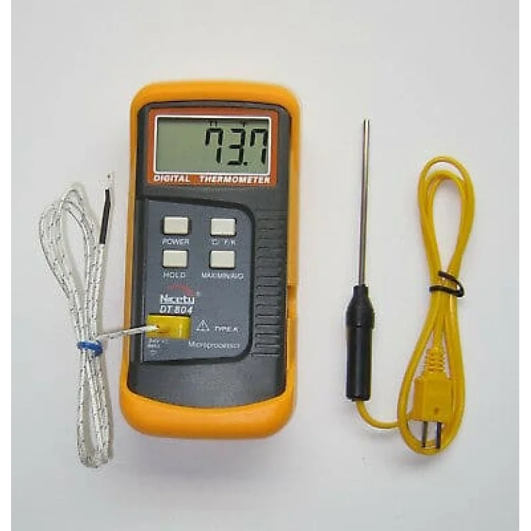The Thermometer/coupleD/Unit-58 to 399*C is a versatile and accurate temperature measuring device that can measure temperatures ranging from -58 to 399 degrees Celsius. It is designed with a sturdy construction and a reliable thermocouple sensor for precise and quick temperature readings. The thermometer features a large LCD display for easy reading of the measurements and also provides a hold function to freeze the display for convenient recording. With its wide temperature range and user-friendly design, this thermometer is suitable for a variety of applications including cooking, HVAC, laboratory work, and more.