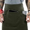 Waist aprons and Utility pouches do not provide upper body coverage. Shorter in length, usually well above the knee, they are super comfortable and provide ease of movement. Most styles come with pockets to store pens, tablets, order pads and other tools of the trade. Making waist aprons and utility pouches an ideal choice for people on the move like front of house staff, waiters, and even barbers, hairdressers or florists.