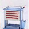 Emergency trolley SIZE:L650*W420*H1020mm 1. The trolley is suitable for use in the emergency areas etc. 2. ABS top, convenient size for placing equipment or writing. 3. Equipped with file cassette holder. 4. Finished with bumper wall protectors. 5. Polyrethane castors, two with brakes. 6. CARDIAC BOARD
