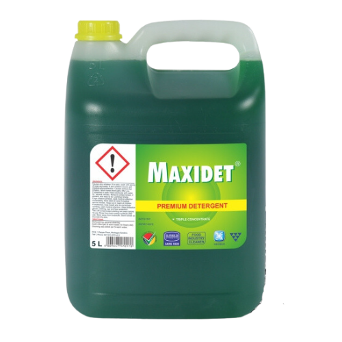 Maxidet is a premium detergent that is great for both dishwashing and general cleaning. It carries an SABS 1828 mark. It is pH neutral and is safe to use on almost every surface. It is biodegradable and nontoxic. Maxidet is high-foaming and great at cutting through grease.