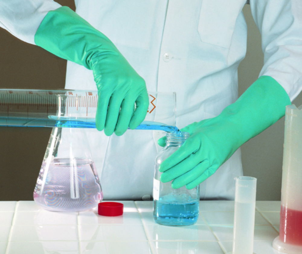Hypoallergenic protective glove made of synthetic material, specially developed for people with sensitive skin. More comfort due to flocking. Anatomical shape. High dexterity. Good handling of slippery objects due to the embossed texture. 1pair per pack.